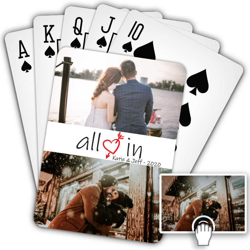 Personalized wedding playing cards can be distributed at any moment in your wedding timeline. Send them out as save-the-dates to get guests excited about your wedding or reserve them for use at your ceremony or reception.